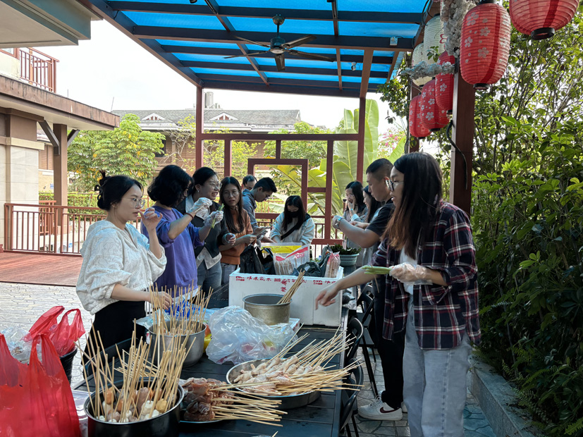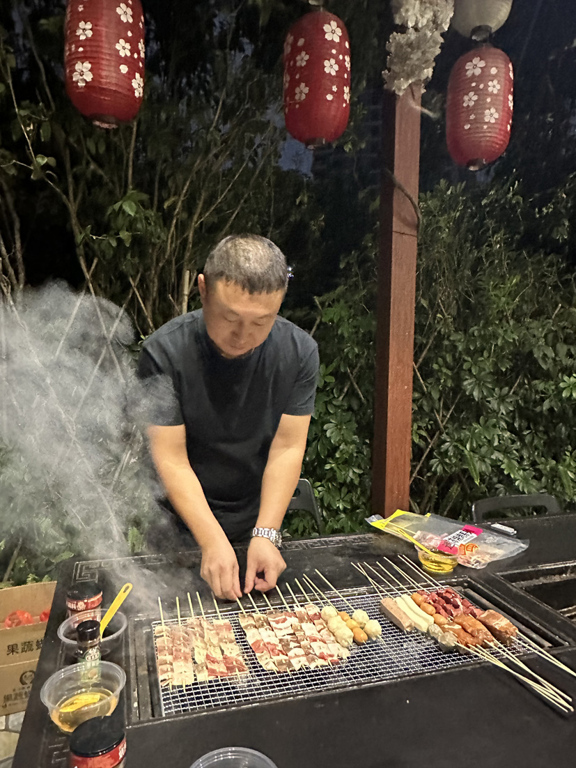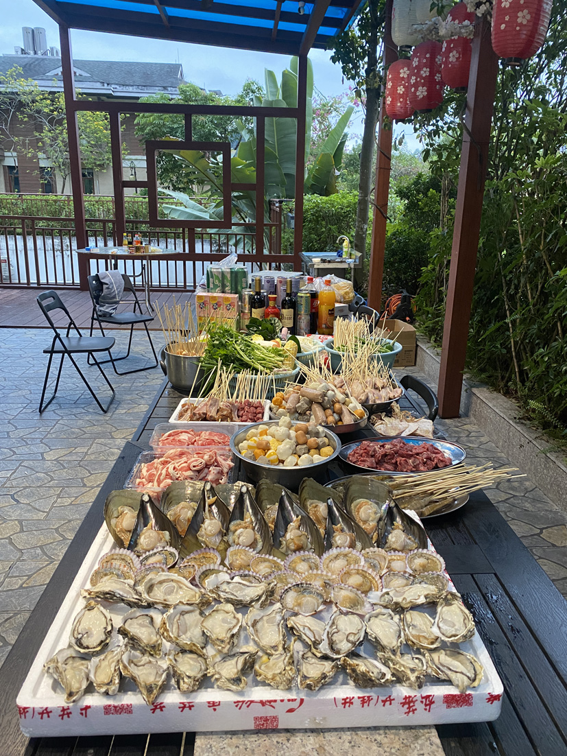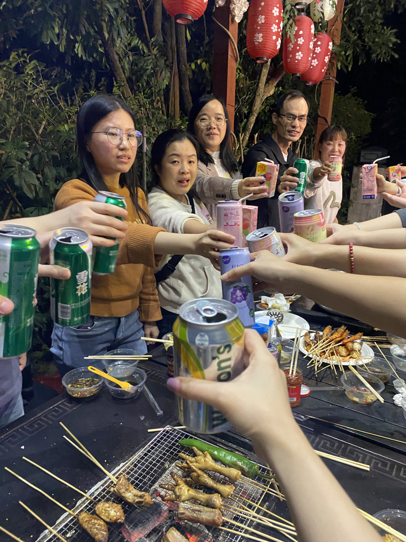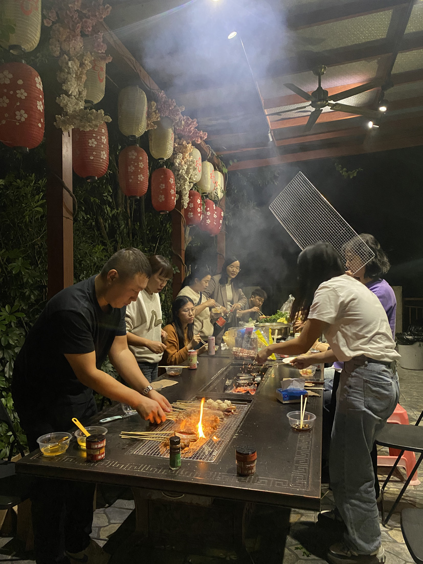 即将傍晚, 大家围坐在餐桌旁,开启了我们的烧烤/火锅大餐,各部门都展现着自己的烧烤技艺和“蹭功”,穿梭在每组之间寻觅美食,一起开怀畅饮,享受人间烟火气。