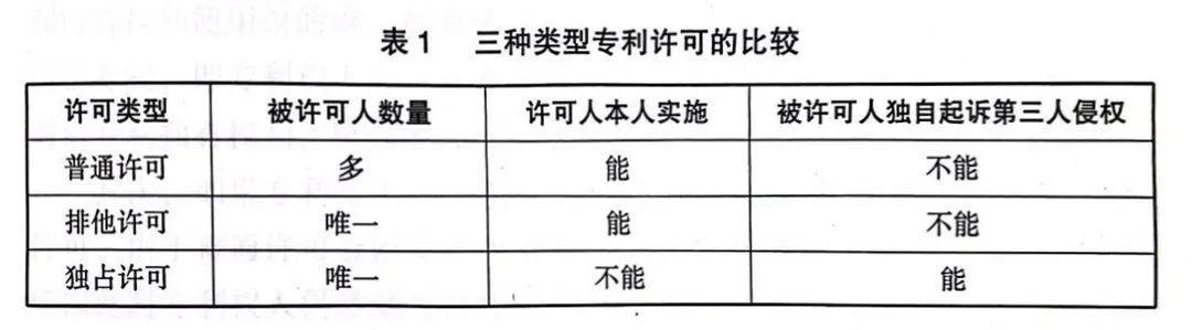 简单总结一下三种类型专利许可的主要区别,见表1。