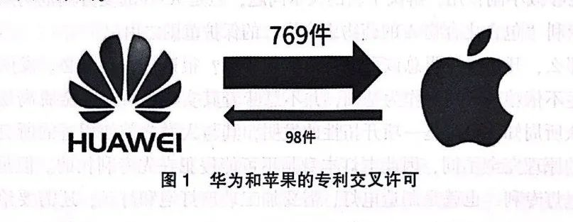 在实践中,专利交叉许可是降低企业成本、获取专利效益的一条有效路径。如此,不仅不再需要向其他企业支付昂贵的专利许可费用,有时还能产生实实在在的效益。在这方面,华为是一个很好的例子,其向外缴纳的专利许可费最高一度达到产品销售收人的7%。近年来,华为十分重视研发,2015年,华为在研发方面投人596亿元,占销售收入的15%。依靠这样的大投入,目前华为已拥有国内外专利数量超过5万件。广东省知识产权局公布的《2015年广东省专利监控报告》中提到,当年华为向苹果公司许可专利769件,苹果公司向华为许可专利98件(如图1所示),这是华为加强专利运用的一个典型案例。