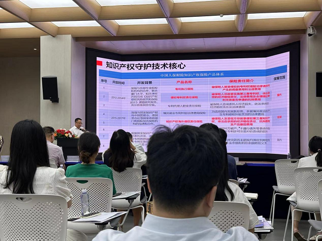 中国人保东部支公司的总经理翟沛泉翟经理对知识产权保险政策及产品做简要介绍,建议充分利用东莞市知识产权金融政策作为发力点,整合政府、金融机构、知识产权服务机构资源,利用保险+服务助力本土企业科技创新及成果转化。