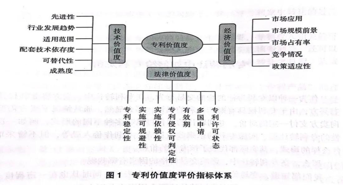 专利价值评估当前是专利运营中最热门的话题,研究者建立了多种不同的模型和评估体系。一般来说,专利价值评估包括技术价值、经济价值和法律价值这三个一级指标。例如,国家知识产权局专利管理司和中国技术交易所组织编写的《专利价值分析指标体系操作手册》推出的专利价值度三维划分评价方法,从专利的技术价值度、经济价值度、法律价值度三个角度进行评价打分,最后加权计算总分数,具体的评价指标体系如图1所示。
