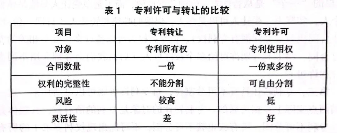 专利许可与转让的区别简单总结如表1所示。